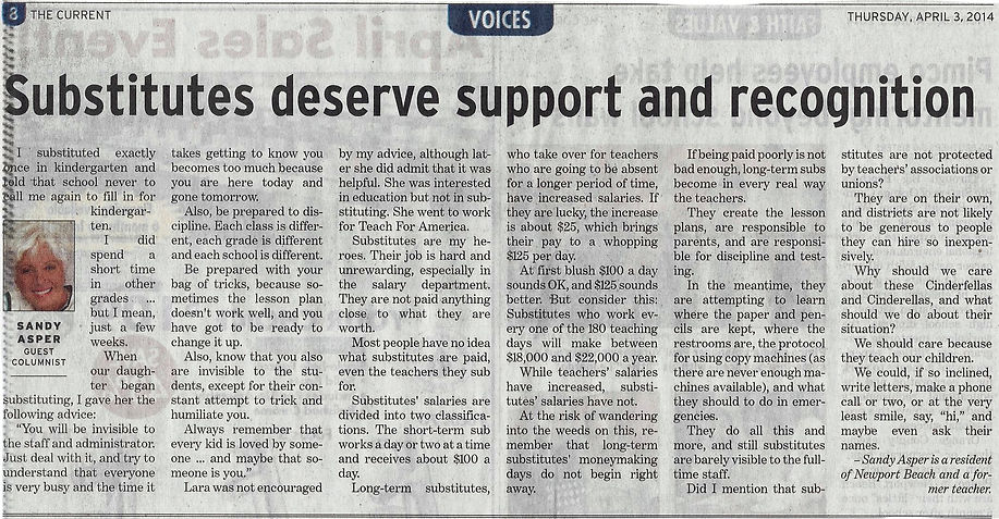 Newport Beach resident SANDY ASPER is an author and a retired teacher.
